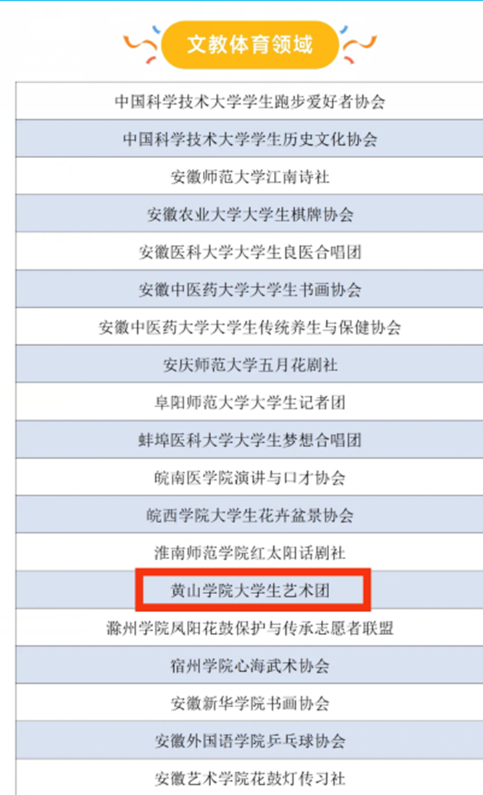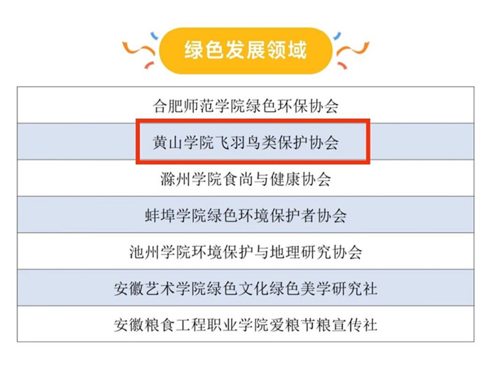 近日,团省委公布2023-2024学年安徽省高校联通杯“活力社团”TOP100榜单,我校徽州学社、大学生艺术团、飞羽鸟类保护协会三个学生社团成功入选。