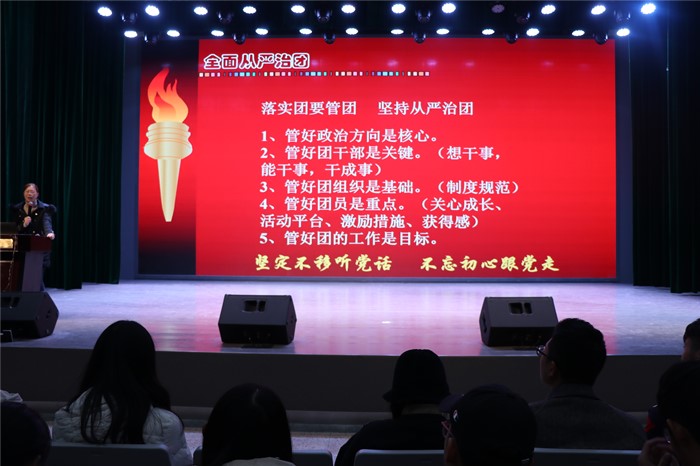 在简短的开班仪式后,团委书记邱慧以“从严治团”为题作了主题团课分享。她围绕共青团的主责主业、团的思想建设和组织建设等方面,解读了从严治团的时代意义和主要举措。同时,她希望团员青年在新时代要不忘初心、牢记使命,坚持用习近平新时代中国特色社会主义思想武装头脑,做自己远大理想和祖国共同理想的坚定信仰者和忠实实践者,放飞青春梦想,书写人生华章。