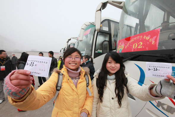 免费专车伴你行,考生路途很安心。北区旅游学院06旅本的牟同学称,她1月初看到了校园网挂出的通知,并在近期经露天宣传橱窗贴出的海报确认以后,7日下午与“研友”陆同学一起到了校团委办公室,领到车票的第一时间她开心地告诉记者:“学校切实为我们考研同学着想,还开通了专车免费护送考试,我们心里感觉很温暖、很踏实,并且看到有这么多的校友在一起,身上充满了力量,考研成功的信心也为之大增。”