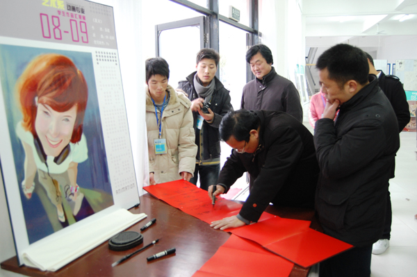 1月4日上午,校党委书记汪良发、院长汪建利、党委副书记李家祥、纪委书记吴邦贵、副院长樊嘉禄观看了艺术系在陶艺实训中心举办的首届“迎新春08、09动画专业作品展”。