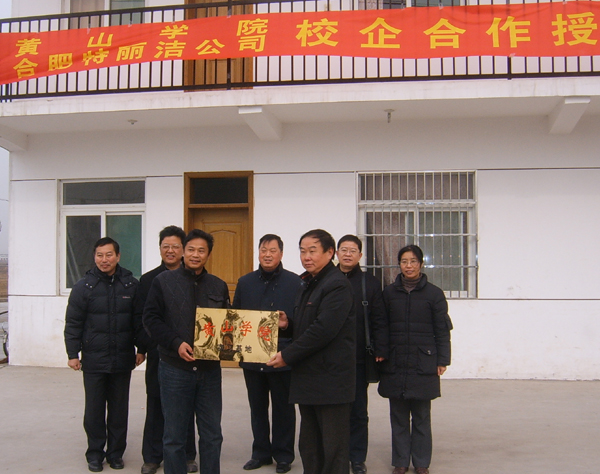 在特丽洁公司举行的授牌仪式上,公司总经理张光明代表公司对校领导一行的到来表示热烈欢迎,并介绍了公司的发展情况,他说,自从巢湖产学研对接会签约以来,双方进行了实质性的合作并取得了阶段性成绩,与化学系共同申报的产学研项目获得了省科技厅成果奖。