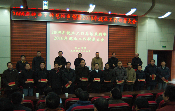 汪良发宣读表彰的决定并同与会领导一起为获奖单位颁奖。全校13个院系都完成了2009年就业率目标任务,并获得目标奖励;信息工程学院、旅游学院、经济管理学院获得2009年度院系毕业生就业工作评估一等奖,其余院系获二等奖。获得一等奖的院系负责人分别上台交流了就业工作的创新做法和经验。