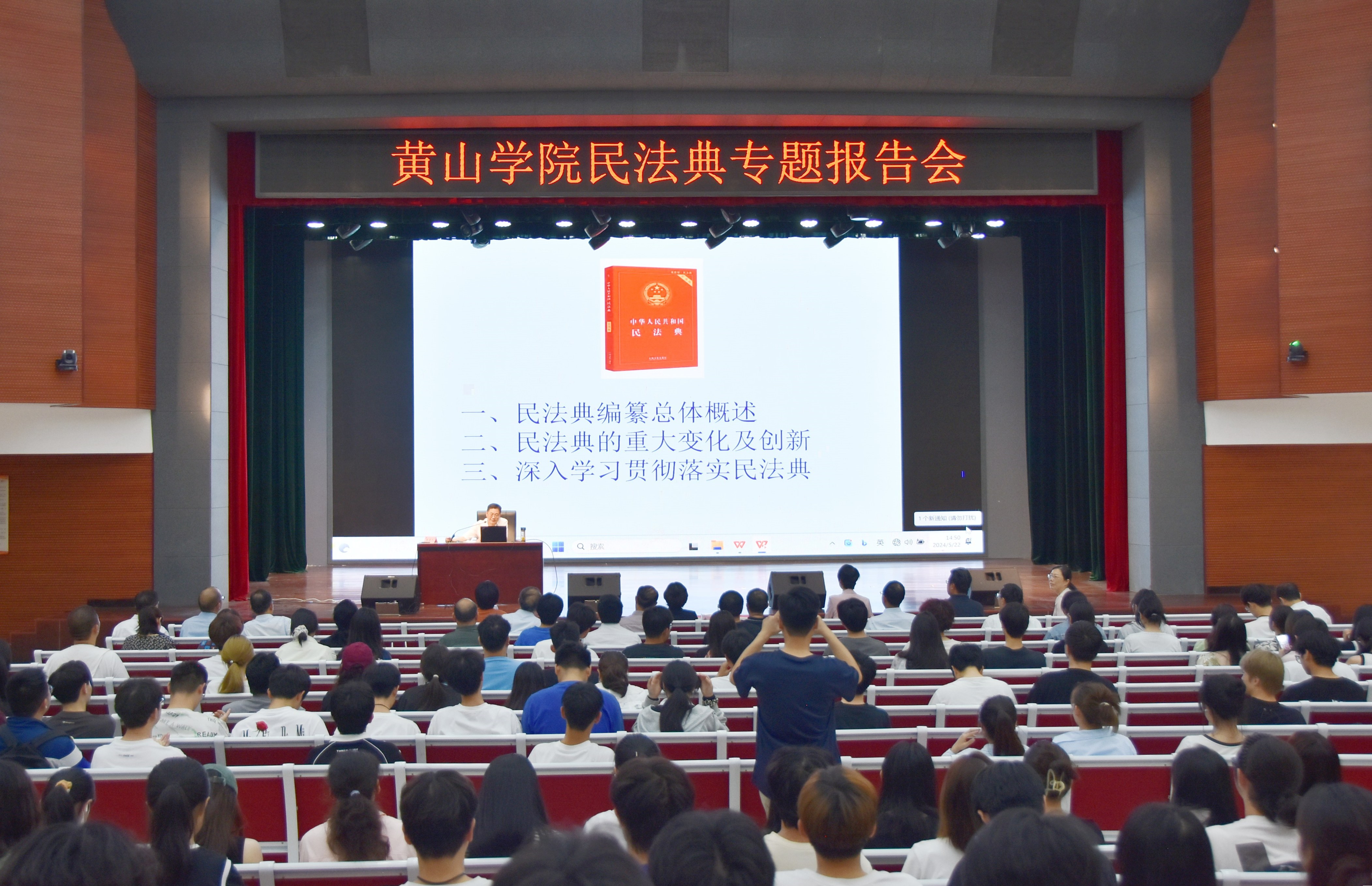 5月22日下午,我校在大学生活动中心举行“弘扬法治精神 ‘典’亮美好校园”民法典专题报告会,校党委副书记章文静出席报告会,马克思主义学院教授郑文兵受邀作专题报告,各二级党组织主要负责人、各部门主要负责人、马克思主义学院全体教师、各学院师生代表700余人参加了报告会,报告会由宣传部负责人主持。