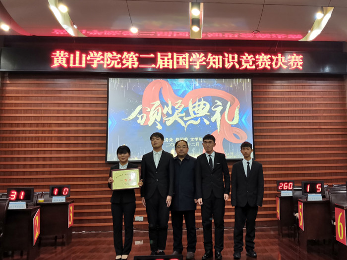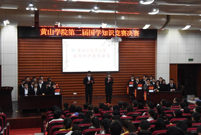 12月18日下午,由教务处、校团委、文学院联合举办的黄山学院第二届国学知识竞赛决赛在逸夫图书馆二楼报告厅举行。校党委委员、教务处处长张小明,经济管理学院党委书记戴小宁,文学院党总支书记汪方学,文学院副院长沈昌明,文化与传播学院副院长王俊峰,旅游学院党委副书记方磊,信息工程学院副院长官骏鸣出席活动并为获奖选手颁奖。文学院博士朱宏胜老师担任比赛仲裁。