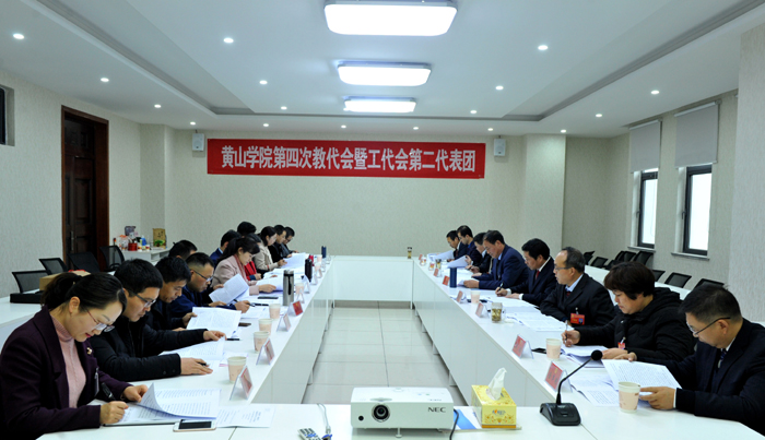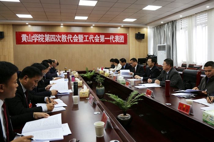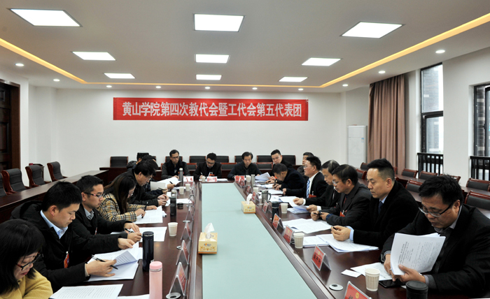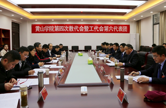 12月30日下午,根据黄山学院第四次教职工代表大会暨工会会员代表大会日程安排,7个代表团在大会秘书处指定的地点认真讨论审议《学校工作报告》《工会工作报告》《2019年财务预算执行情况和2020年财务预算报告》,讨论《<学校工作报告>决议(草案)》《<工会工作报告>决议(草案)》,酝酿教代会执委会、工会委员会委员候选人名单、工会经费审查委员会委员候选人名单、讨论《选举办法(草案)》。校领导汪枫、胡家俊、胡善风、刘英旺、张德学、陈家祥分别到各自代表团参与讨论,倾听代表意见。