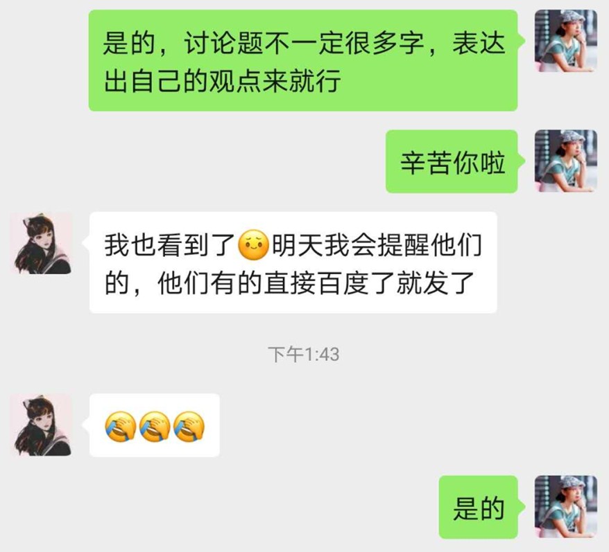 耿佃梅发现,线上教学受到学生来自不同地域和家庭的影响,有的地域、家庭因网络受限,不能及时参与线上学习讨论。她积极实施分类教学,每堂课结束后,再针对不能及时参与课堂的学生,逐个联系,进行单独辅导和讨论。