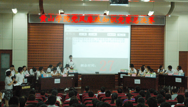 6月25日下午,黄山学院党风廉政建设知识竞赛决赛在逸夫图书馆二楼报告厅举行。校领导汪良发、汪建利、徐成钢、吴邦贵,党委委员、组织部长胡一宁观看比赛。
