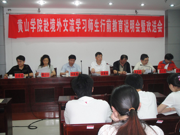 6月30日上午,我校举行2010年秋季赴韩国交流学生欢送会。院长汪建利和相关院系领导出席欢送会。此次共有44名学生赴韩国各友好学校学习,包括33名中韩班学生、1名实习生、4名交换生和6名自费生,他们分别来自旅游学院、文学院、艺术系、教育系、建筑系、经管学院、生环学院和外语系。