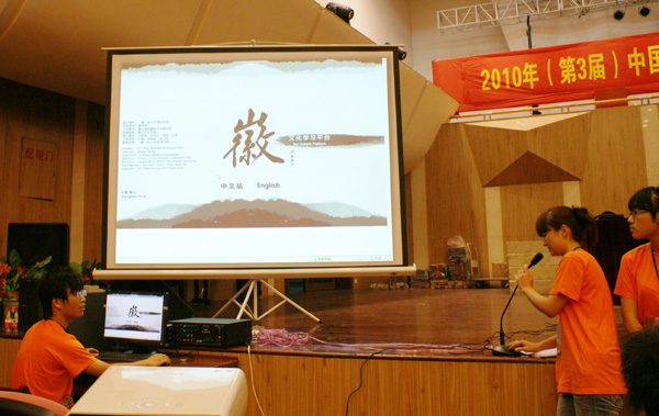 7月23日,为期4天的2010年(第三届)中国大学生(文科)计算机设计大赛决赛在湖北武汉华中师范大学落幕。黄山学院参赛作品“《徽》”通过网上初评进入决赛,荣获学习平台类作品一等奖。