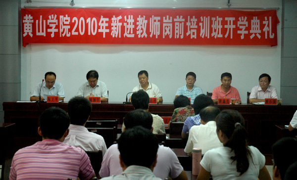 8月16日上午,2010年新进教师岗前培训班开学典礼在逸夫图书馆第一会议室举行。院长汪建利出席开幕式并讲话。办公室、宣传部、人事处、教务处、科研处等部门负责人,任课教师及新进教师参加典礼。