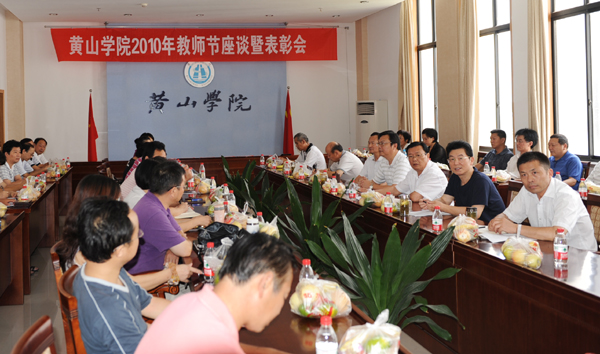 9月9日下午,召开2010年教师节座谈会暨表彰会。校领导汪良发、李家祥、徐成钢、吴邦贵、樊嘉禄、胡家俊等与教授,院系、部门负责人,先进集体代表,全体先进个人,管理服务优秀奖代表,新教师代表等以座谈会的方式共同庆祝教师节。党委副书记李家祥主持会议,副院长徐成钢宣读了学校的表彰决定。校领导给评为2009年度先进集体、先进个人以及管理服务优秀奖获得者分别颁发了获奖牌匾和荣誉证书。座谈中,大家为身为教师一员感到骄傲,为学校取得的巨大成绩感到自豪,表示要为黄山学院的美好明天继续作出自己的贡献。