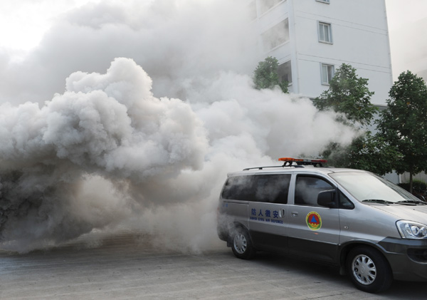 18日上午9时整,我校与市人民防空办、市消防支队在南区大学生超市前广场(胡适路)、茂荫路、大位路处联合举办了防空和消防演习。副院长胡家俊,有关部门、院系负责人、南校区2010级新生以及住在11-12幢全体学生参加演习活动。