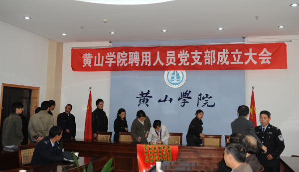 胡一宁宣读了关于设立黄山学院聘用人员(临时)党支部的通知(组字【2010】5号),并强调了此次聘用人员临时党支部成立的重要性和必要性。
