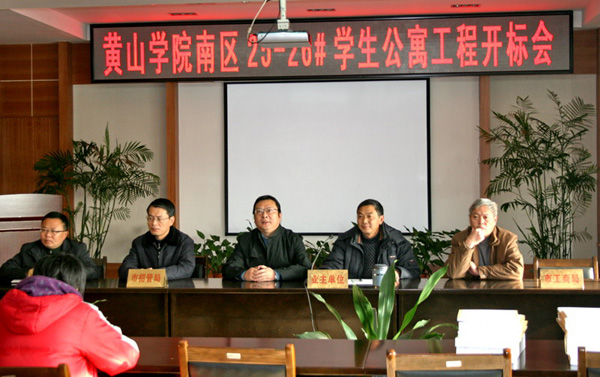 12月29日上午9:00,我校25-26#学生公寓楼工程开标会在黄山市建设交易中心举行。副院长徐成钢出席会议。市工商局、市招标办、恒平公证处等派员出席并监督开标、评标全过程。