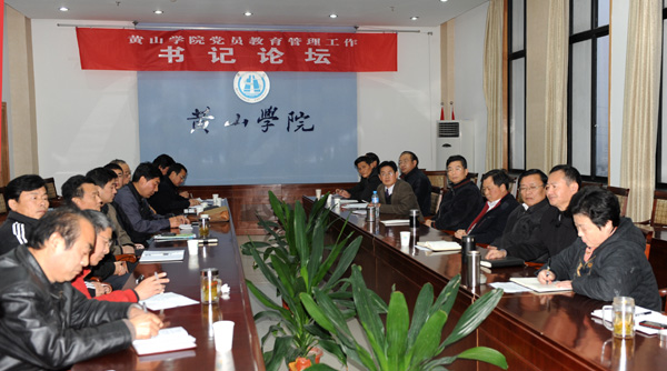 2010年12月1日下午,我校“党员教育管理工作书记论坛”在逸夫图书馆三楼会议室举行,校党委书记汪良发,党委副书记、院长汪建利,党委副书记李家祥,纪委书记吴邦贵以及校创先争优活动办主任、副主任、各党总支书记、党支部书记代表参加论坛。论坛由党委委员、组织部部长胡一宁主持。
