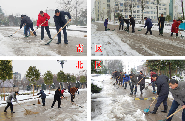 昨日暴雪骤降,校园及门口道路积雪严重,影响道路正常通行。1月20日下午,我校教职工紧急行动,在院长汪建利、副院长胡家俊的带领下,踊跃为校园道路铲冰除雪,确保了道路畅通。