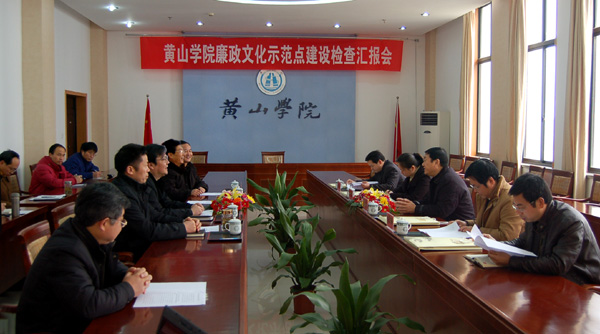 在三楼会议室召开的黄山学院廉政文化示范点建设检查汇报会上,校党委副书记李家祥代表学校向检查组来校检查指导工作表示欢迎。他介绍了我校发展和党风廉政建设工作情况,并请检查组对我校廉政文化建设工作提出宝贵的意见。