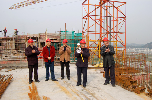 2011年3月24日上午,春光明媚,知园工地红旗招展。校领导汪良发、汪建利、李家祥、徐成钢、吴邦贵等兴高采烈地登上知园5号楼11层楼面,出席知园主体结构封顶仪式。建设单位、监理单位、住户代表以及施工单位的工程技术人员100余人参加了封顶仪式。
