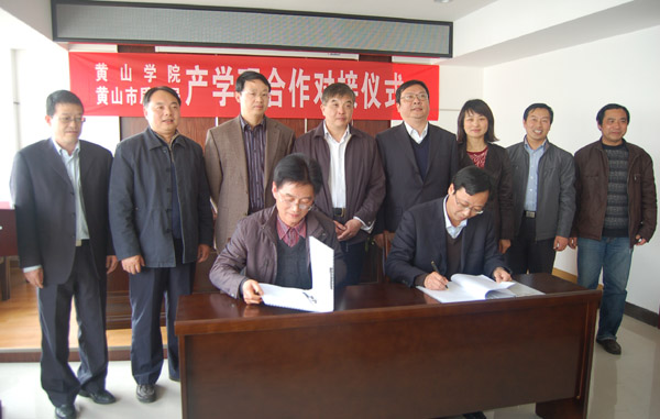 对接仪式上,徐成钢对产学研合作协议的签署表示祝贺,他感谢黄山市政府多年来对我校办学给予的大力支持。他表示,作为一所省属普通本科院校,黄山学院将一如既往地做好服务地方社会经济发展工作。叶长荫希望以此次活动作为一个更高起点,双方今后在更广、更深的层次上展开合作,谋求共同发展。随后,双方代表签署了产学研合作协议。