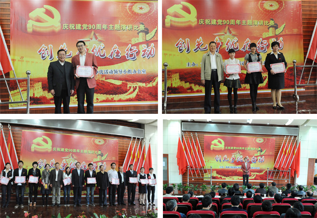 比赛中,王俊峰、吴敏、王林、吴琬菁等老师结合本部门的工作实际,表达了对创先争优活动内涵的理解,阐释了立足本职做贡献的责任,赞颂了在平凡岗位上做出不平凡事迹的人们。11名同学选手则结合自己的学习与生活,从平凡小事的重要性、优秀党员的标准、党员服务意识等角度讲述了自己身边的人和事。