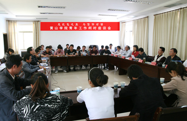 下午,在黄山学院青年工作柯村座谈会上,17名师生先后发言,大家结合本次活动主题和活动背景畅谈参与此次活动的所思所感,认为能够走进革命老区,切身感受革命先辈的艰苦奋斗精神,受益匪浅,大家深感今日幸福生活的来之不易和肩上责任之重大,表示要继续传承革命先辈的光荣传统,努力学习,勤奋工作。数学系学生干部胡应恒、建筑系学生干部杨俊还表达了将来会投身到柯村的建设中去的愿望。艺术系学生干部毕泗阳以歌曲《永远跟党走》表达了心声,张云惠同学即兴创作了一曲快板,生动描述了活动主题和过程,形式多样的交流形式使座谈会气氛异常活跃。柯村乡党委领导也与同学们一起交流座谈。