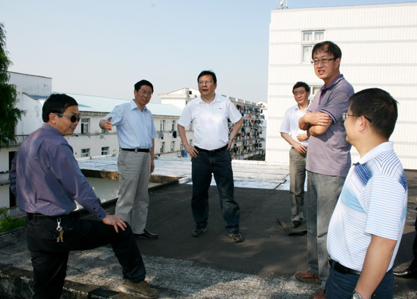 在旅游学院实训楼,徐成钢登上屋顶,仔细检查了屋面防水维修情况,并对陪同的旅游学院领导说,为教学服务、为科研服务是后勤工作应尽的职责。总务处要破解老校舍屋面漏水这道难题,制定维修方案,要从根本上解决实训楼屋面、墙面渗水问题,保证该楼正常、安全使用。