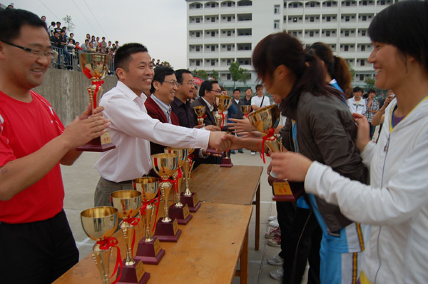 5月25日下午,为期近半个月的第26届“行知杯”篮球赛圆满落幕。副院长、校体委主任樊嘉禄为各获奖队伍颁发“行知杯”。