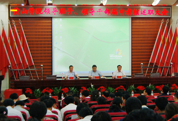 5月31日下午,我校在图书馆二楼报告厅召开校领导班子及校级领导干部届中考核大会。