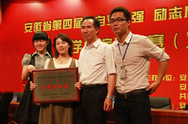 6月5日,在安徽省第四届“自立自强,励志成才,报效祖国”大学生演讲比赛决赛中,我校获得优秀组织奖,08思政的江芸同学获得一等奖,08旅游管理的周云同学获得二等奖。