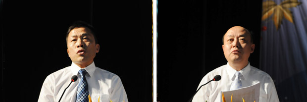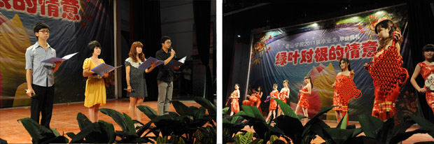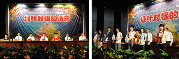 副院长樊嘉禄宣布2011届毕业生毕业及学位授予情况。副院长胡家俊宣读黄山学院2011届优秀毕业生表彰决定。校领导向优秀毕业生代表颁发了荣誉证书。