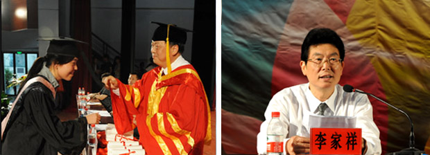 汪建利向毕业生代表颁发毕业证书和学士学位证书 党委副书记李家祥主持典礼