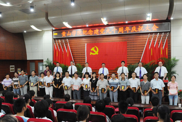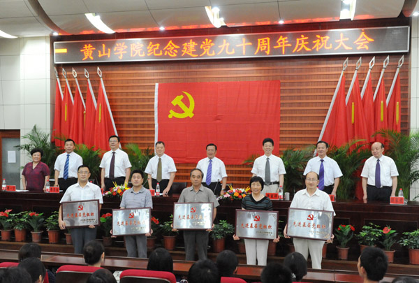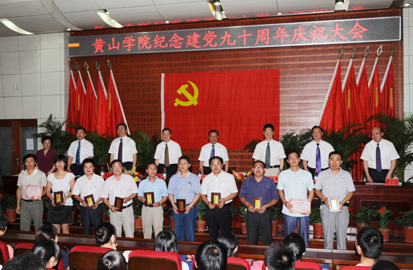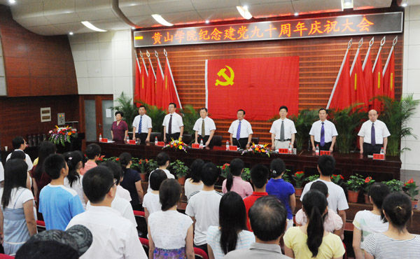 6月28日下午,我校庆祝中国共产党建党90周年暨新党员入党宣誓大会在图书馆二楼报告厅隆重举行。校领导汪良发、汪建利、李家祥、徐成钢、吴邦贵、樊嘉禄、胡家俊,党委委员、组织部长胡一宁,受表彰的先进基层党组织负责人、优秀共产党员、优秀党务工作者,部分教职工党员和学生党员代表参加了大会。大会由党委副书记、院长汪建利主持。