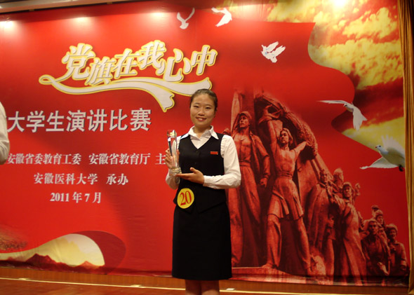 胡映恒同学喜爱并擅长演讲,校团委以及数学系党总支对她的演讲内容进行了多次的修改和认真把关,同时还聘请了普通话省级测试员王俊峰老师和吴敏老师为她示范、指导。通过她本人的出色表现,胡英恒同学从在铜陵学院举办的片赛开始,就从全省200多名选手中脱颖而出,以排名第二的成绩进入全省决赛。决赛中,胡映恒同学以饱含深情而又激昂的演讲再次令现场评委和观众折服。