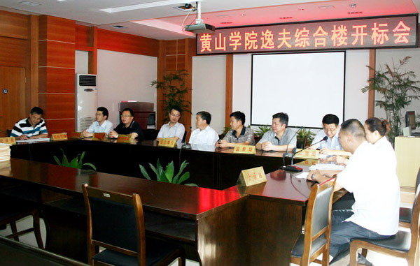 8月5日上午,我校逸夫综合楼工程开标会在黄山市招标采购交易中心举行。黄山学院院长汪建利,黄山市招标采购监督管理局局长汪德宝,黄山市招标采购交易中心副主任韩灶义出席开标会,中国人民健康保险公司安徽分公司黄山营销服务部综合部经理江小文作为特邀监督员出席开标会,黄山市工商局、黄山市恒平公证处以及我校财务处、教务处、监察审计处、总务处、后勤集团等部门的负责同志参加了开标会。
