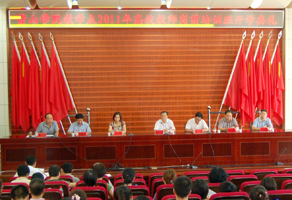 8月16日上午,黄山学院教学点2011年高校教师岗前培训班开学典礼在逸夫图书馆二楼报告厅举行。黄山学院院长汪建利、黄山卫生学校校长冯伟华出席开幕式并讲话。卫校副校长方勤、黄山学院办公室、人事处、教务处、科研处等部门负责人、任课教师及培训学员参加典礼。开学典礼由人事处处长陶卫平主持。
