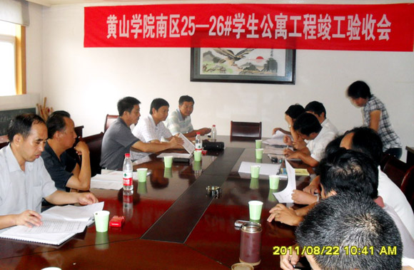 8月22日,我校举行25-26#学生公寓楼竣工验收会。中铁芜湖建筑设计研究院、黄山市建设工程质量监督站、黄山市工程勘探院、黄山市正信监理有限公司的专家以及我校财务处、监察审计处、后勤服务集团、总务处等部门的负责同志参加了验收会。