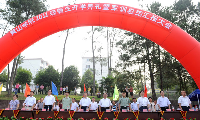 9月17日上午,晴空万里,艳阳高照,黄山学院2011级新生开学典礼暨军训总结大会在南区体育场隆重举行,这标志着2011级新生十多天的军训生活圆满结束,他们将用五彩缤纷的画笔为大学生活涂上新的色彩。