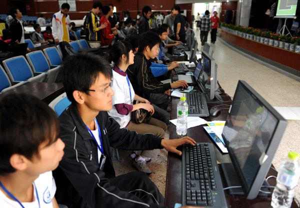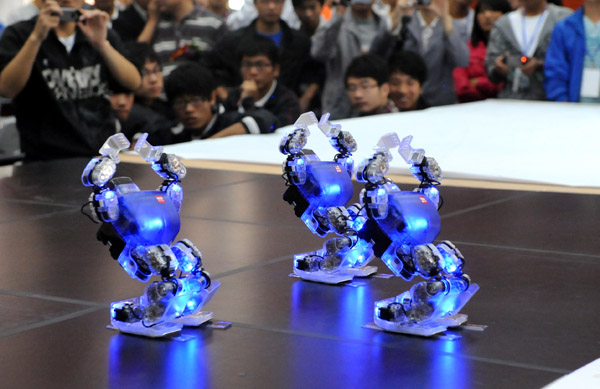 黄山学院共有7支参赛队参加比赛,其中2支参加仿真2D,2支参加仿真3D,1支参加家用机器人仿真,1支参加仿人机器人舞蹈,1支参加机器人擂台赛。