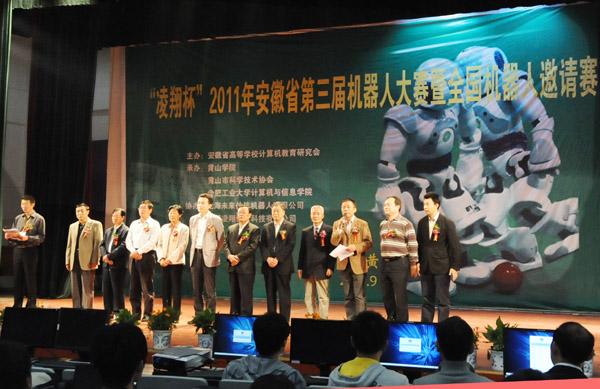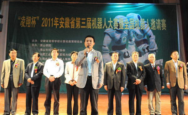 “凌翔杯”安徽省第三届机器人大赛暨全国机器人邀请赛于9月24日在我校开幕。市委常委、市委组织部长张永,市人大常委会副主任汪秀娟,副市长黄林沐,市政协副主席项金如,黄山学院党委书记汪良发,院长汪建利,副院长樊嘉禄,省高校计算机教育研究会理事长袁兆山,以及市科协领导等出席开幕式。
