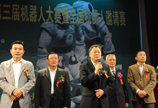 汪建利宣布:“安徽省第三届机器人大赛暨全国机器人邀请赛开幕!”