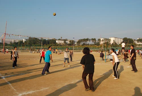 全校共有17个分工会代表队参加比赛,历时一天半,根据规则要求每支队伍中女性选手不得少于2人。比赛中,不少女老师以发球狠、接球稳而获得场外喝彩;有些院系还组织了学生啦啦队为教师们呐喊助威,比赛现场氛围活泼、生动。