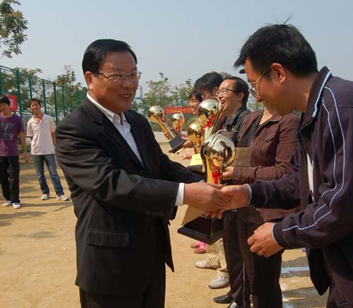 10月23日上午,我校第六届教职工排球赛圆满落幕。校党委书记汪良发为获奖代表队颁奖。