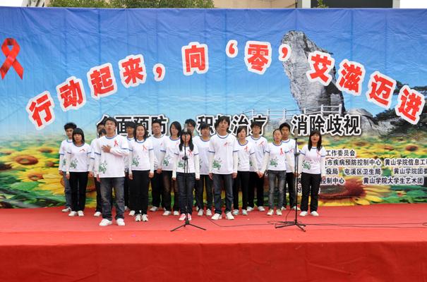 12月1日是第24个“世界艾滋病日”,由信息工程学院承办、市防治艾滋病委员会主办的“行动起来,向‘零’艾滋迈进”文艺演出和防艾知识竞答活动,于当日下午在屯溪区昱中花园举行。