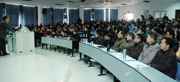 12月25日,我校第四届教学优秀奖评选公开教学活动在南校区二教楼一楼报告厅举行。校领导汪建利、吴邦贵、樊嘉禄出席。公开教学由教务处处长陈国平主持。