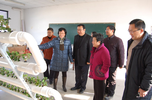 徐成钢察看生环学院水培植物实验室