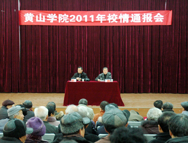 汪建利向老同志通报了我校2011年的主要工作。他说,2011年是我校“十二五”建设开局之年,我们深化各项改革,强化内部管理,进一步推进应用型本科建设,实现了学校“十二五”发展的良好开局。在全省精神文明创建中获得佳绩,荣获第九届安徽省文明单位称号;重视学科专业建设,彰显学校办学特色,出台了旅游、生态、徽州文化特色建设规划,以特色增强学校核心竞争力;在人才培养模式上进行改革,成立“教师发展中心”,加强师资队伍建设,尤其重视青年教师的培养工作;获得“卓越工程师”、“卓越农艺师”等项培养项目,在人才培养的多样性、适应社会需要等方面做了有益尝试;就业工作再次被评为省就业“标兵单位”,办学成就得到社会认可;通过大量卓有成效的工作,学生管理工作再上新台阶;在民生工程建设上,完成了对知园小区的最后验收;在党风廉政建设方面,以预防为主,注重风险防范,学校风气逐步好转。