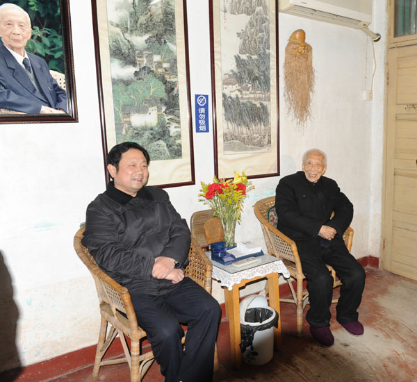 1月11日下午,黄山市委副书记程迎峰,市委常委、组织部长张永,市政协副主席、市委统战部部长杨震来我校看望慰问民主党派离休教授黄澍、秦效成,我校副院长胡家俊随同慰问。