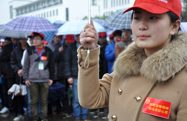 学子冒雨重温“雷锋精神”