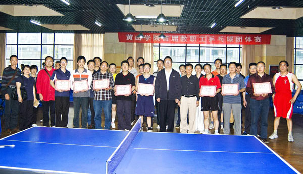 4月28日,我校首届教职工乒乓球团体赛在黄山市体育馆圆满落幕。经过角逐,机关二代表队获得团体赛冠军,思政部①代表队获得亚军,外语学院①代表队获得季军。