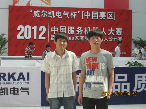2012‘威尔凯电气’杯中国服务机器人大赛于5月11日至13日在上海应用技术学院举行。我校首次组队参加了命令语言仿真、自然语言仿真两项竞赛,双双进入前8强,同获三等奖。